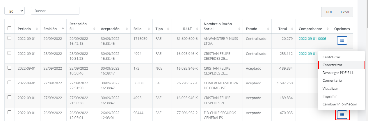 2. Luego visualizará un listado con todos los documentos existentes, en este caso vamos a configurar el código 503 que es DTE FA IVA Uso Común de Compras, donde iremos a Opciones y en los tres puntos hacer clic en Editar.