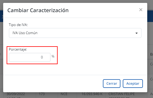 Reseña: Al momento de seleccionar IVA de uso común, habilitará el campo porcentaje. En este campo se puede ingresar el porcentaje del IVA de uso común. Adicional el porcentaje ingresado se verá reflejado en el campo IVA de uso común, y el restante se visualizará en el campo IVA no recuperable.