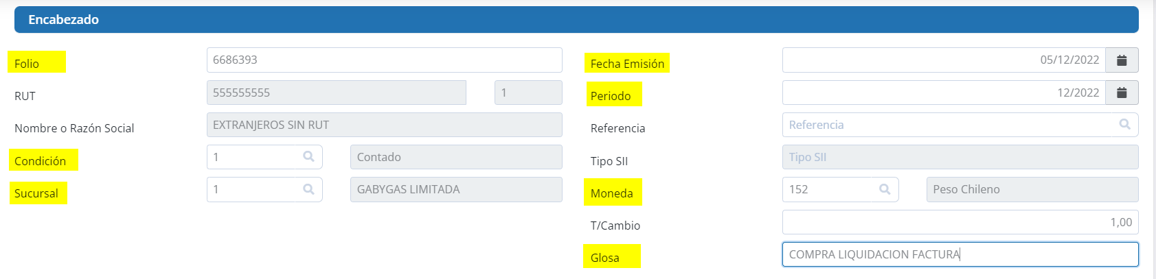 Debe realizar registro de todo lo destacado en amarillo según corresponda.