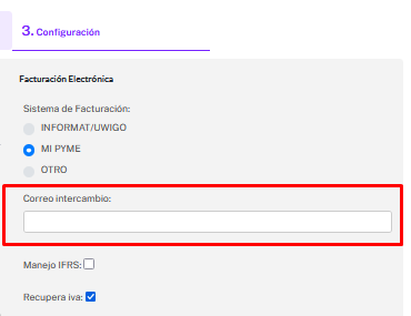 Nota Importante: Al momento de seleccionar un sistema de facturación, este mostrará un mensaje emergente informando sobre el facturador