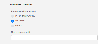 Nota Importante: Adicional se agregaron mensajes de información en los check de facturación electrónica. al seleccionar un tipo de facturación distinto muestra un mensaje informando lo que hace el facturador seleccionado.