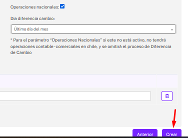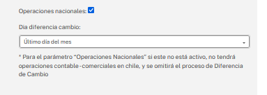 El check Operación Nacional: Este check afecta directamente a diferencia tipo cambio, Si el check se encuentra marcado se podrá generar la diferencia tipo cambio. Al desmarcar el check no se mostrará el botón de diferencia de cambio en contabilidad y tampoco se exigirá en el proceso de cierre.