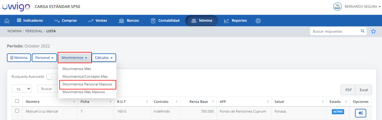 ¿Cómo realizar la carga masiva de movimientos personal?