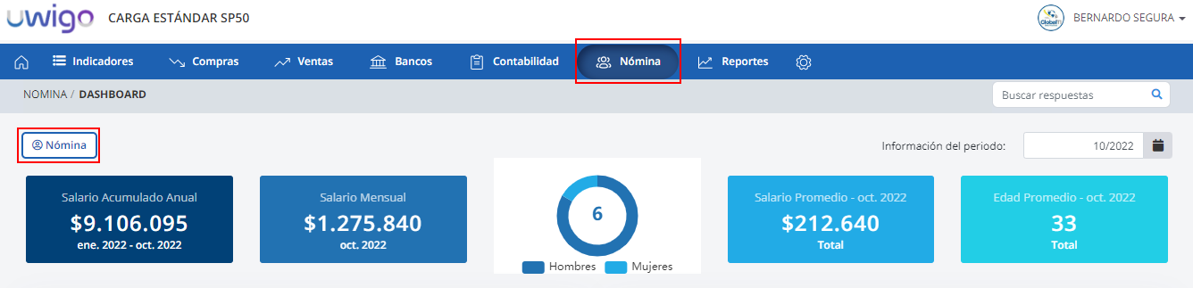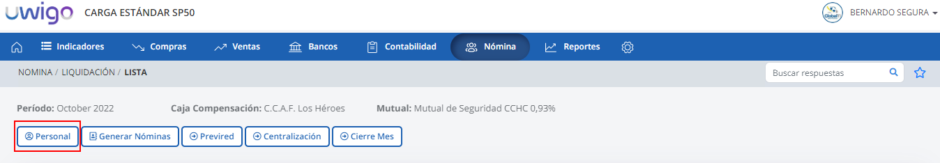 1. Una vez seleccionada la empresa presiona Nómina del menú principal y luego haga clic en Nómina.