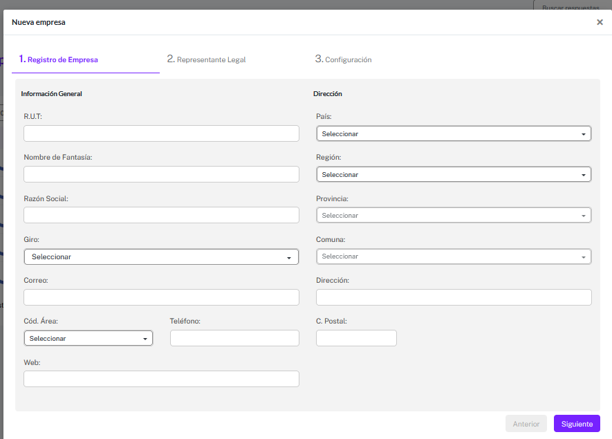 Visión General: En esta sección aprenderá a crear una nueva Empresa, podrá registrar todos los datos indispensables como Rut, Razón Social, Representantes y otros. Crear Empresas es muy fácil y le tomará muy poco tiempo.