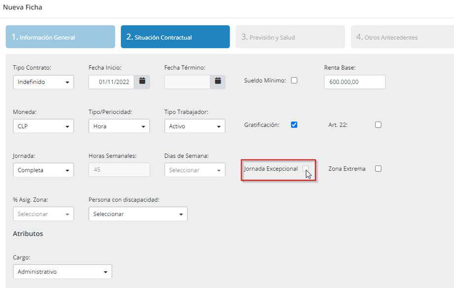 - Jornadas excepcionales: Se agrega un check en la Ficha de Jornada Excepcional cuando es "Jornada Parcial", para que se agregue en el finiquito el descanso compensatorio y se calcule una nueva indemnización referente a ese ítem.